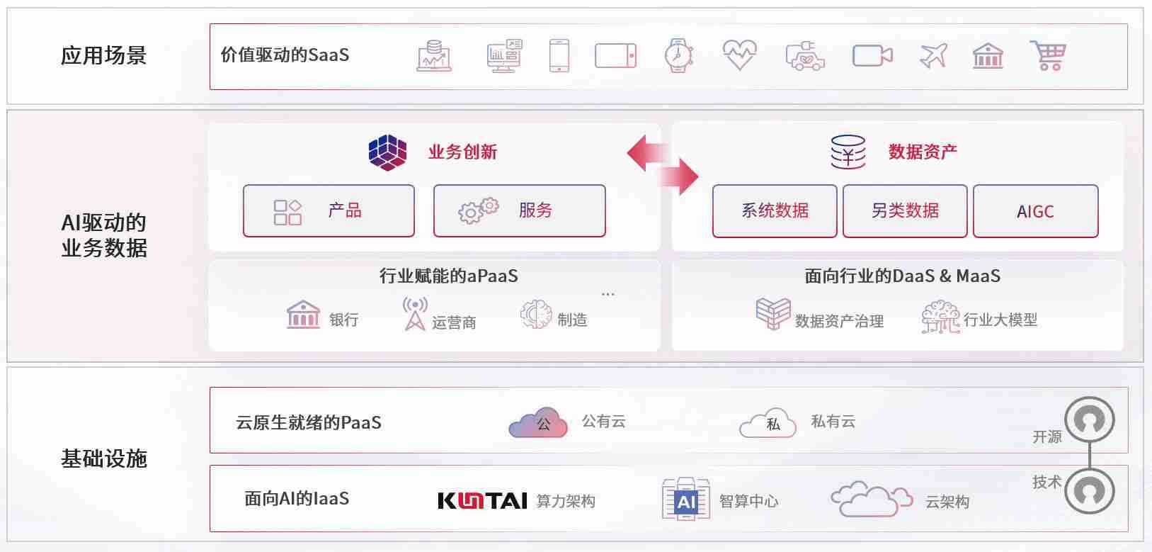 数字时代,,围绕企业数字化转型的关键要素,,,,bifa数码开创性的提出数云融合战略和技术体系框架,,,,着力在云原生、、数字原生、、AI原生和信创产业上架构产品和服务能力,,,为处在不同数字化转型阶段的快消零售、、汽车、、金融、、医疗、、、政企、、、、教育、、、、运营商等行业客户提供泛在的敏捷IT能力和融合的数据驱动能力,,,,构建跨界融合创新的数字业务场景和新业务模式,,,,助力企业级客户建立面向未来的核心能力和竞争优势,,全面推动社会的数字化、、、智能化转型升级。。。